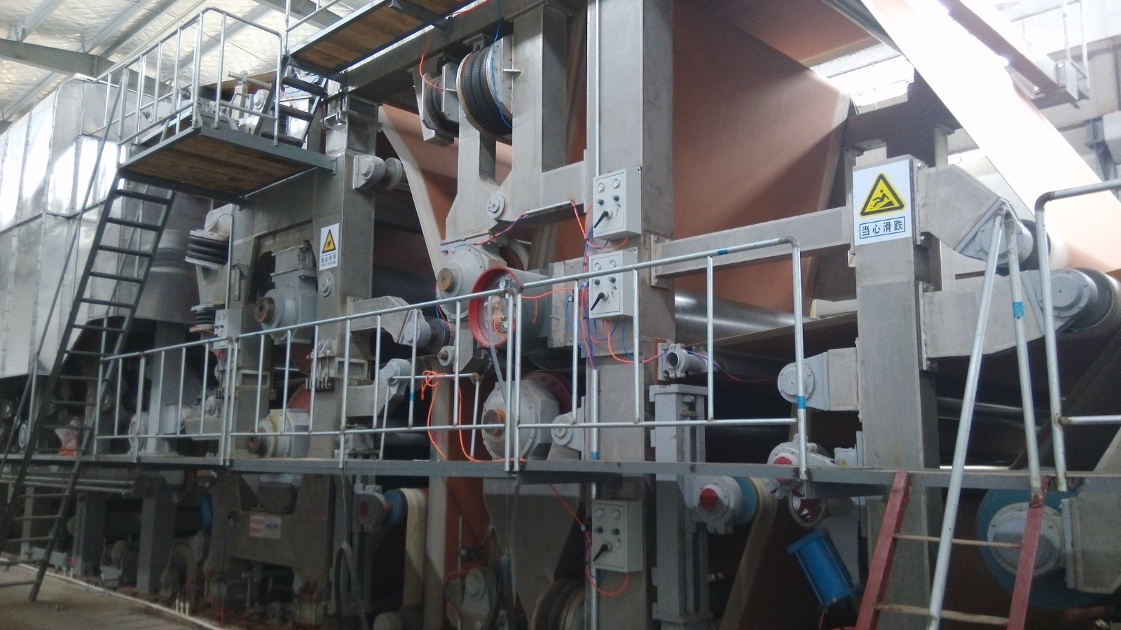 是使紙漿形成紙幅的分部聯(lián)動(dòng)的全套設(shè)備,包括流漿箱、網(wǎng)部、壓榨部、烘干部、壓光機(jī)、卷紙機(jī),以及傳動(dòng)部等主機(jī)和汽、水、真空、潤(rùn)滑、熱回收等輔助系統(tǒng)。形成濕紙幅的網(wǎng)部是造紙機(jī)的核心,所以造紙機(jī)按網(wǎng)部的結(jié)構(gòu)又可分為長(zhǎng)網(wǎng)造紙機(jī),夾網(wǎng)造紙機(jī)和圓網(wǎng)造紙機(jī)。